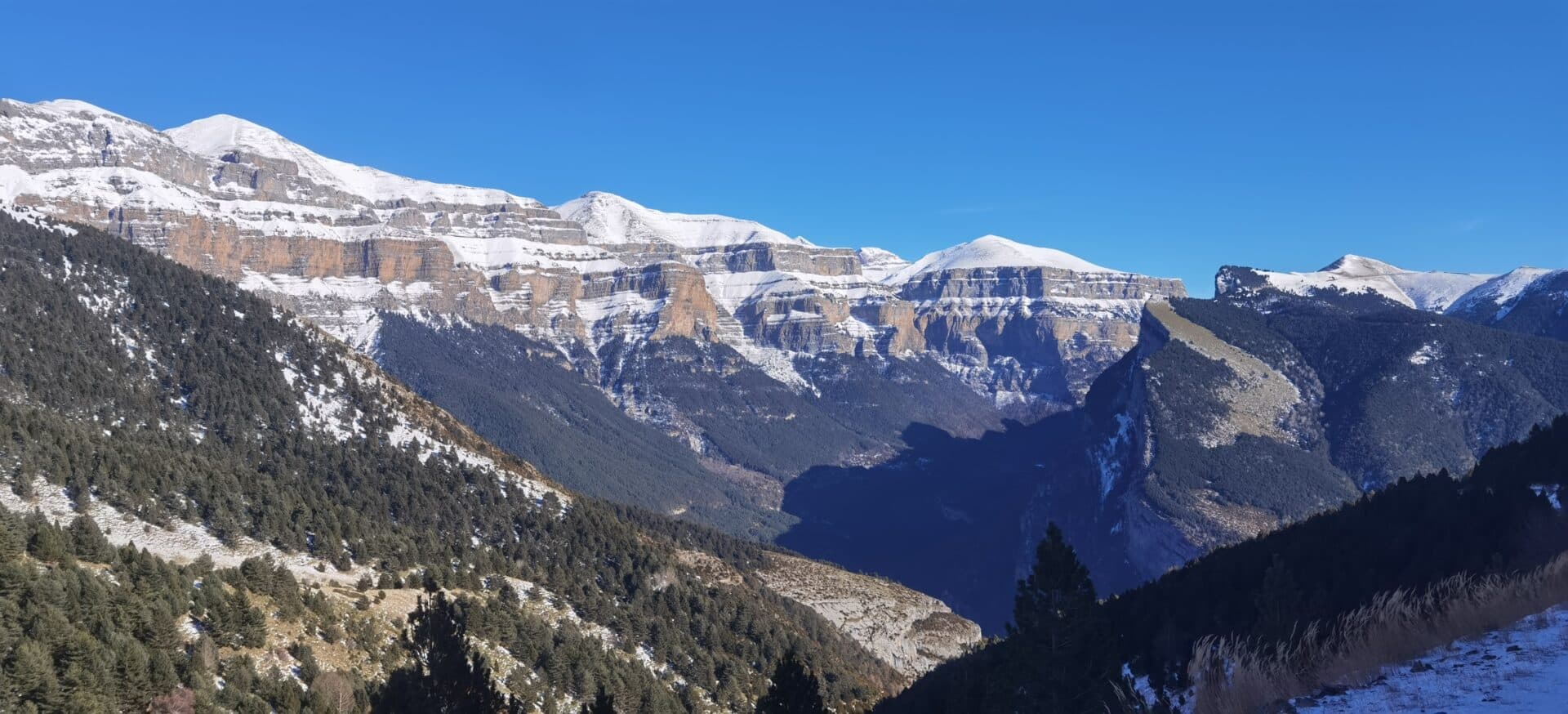 El invierno revela una versión completamente distinta de Ordesa y Bujaruelo. Los valles se cubren de nieve, las cumbres brillan con luz fría y el silencio de la montaña crea una atmósfera única.